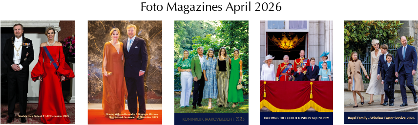 Beautifully designed Photo Magazines featuring extensive photo reports of various royal highlights, including the State Visit of Finland to the Netherlands, the State Visit to Suriname, the Royal Year in Review 2025, Trooping the Colour, and the British Royal Family Easter Mass in Windsor!